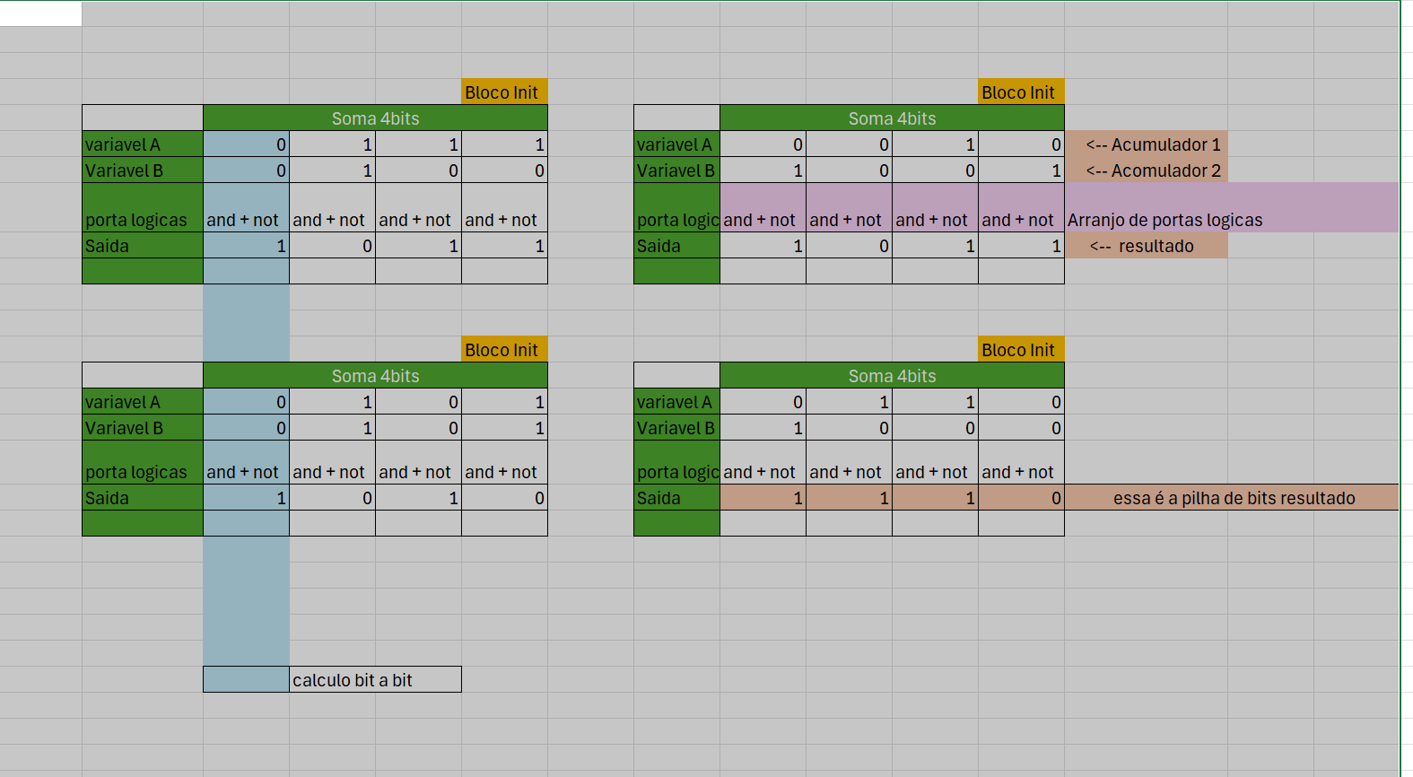 aqui tem a concepção de uma soma e um barramento de 4 bits.
